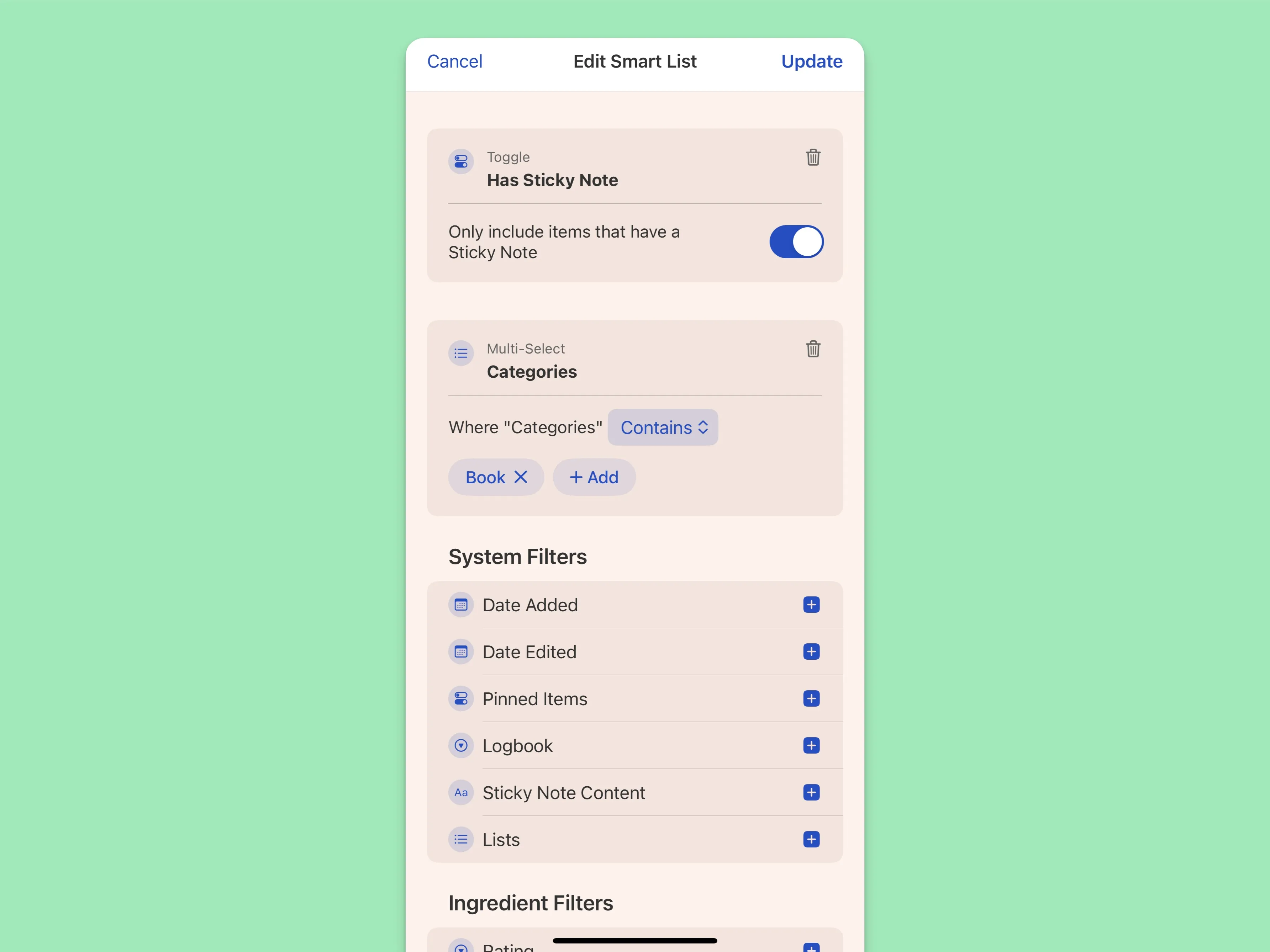 Once you’ve finished, tap Update to apply the changes to your smart list.