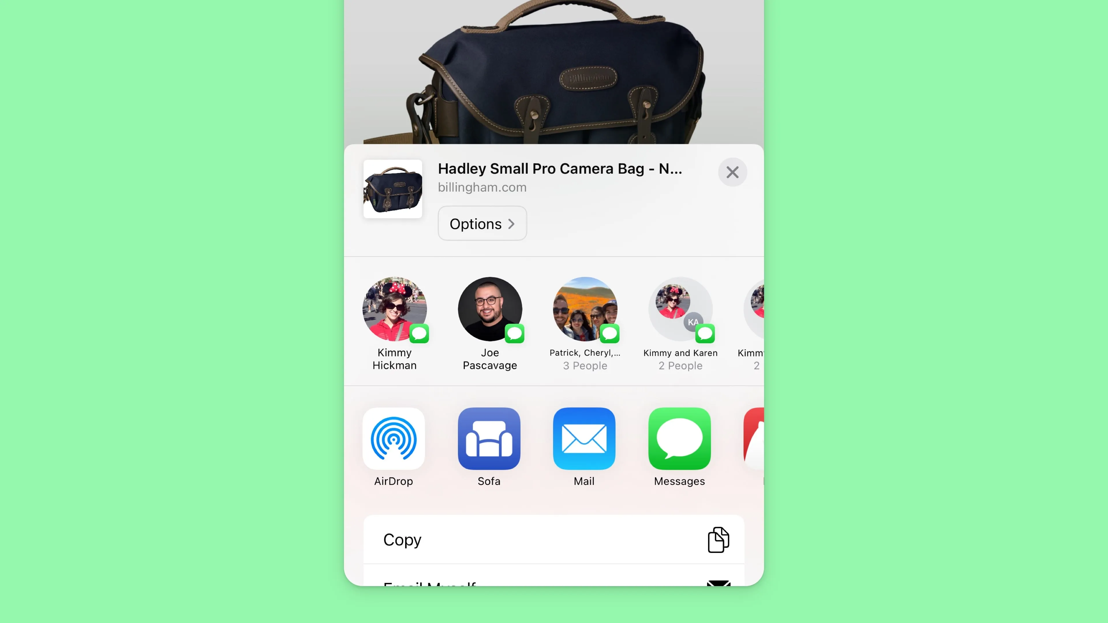 After tapping share, find and select Sofa. Sofa will load the basic details about the website or link, and allow you to choose where to save it.